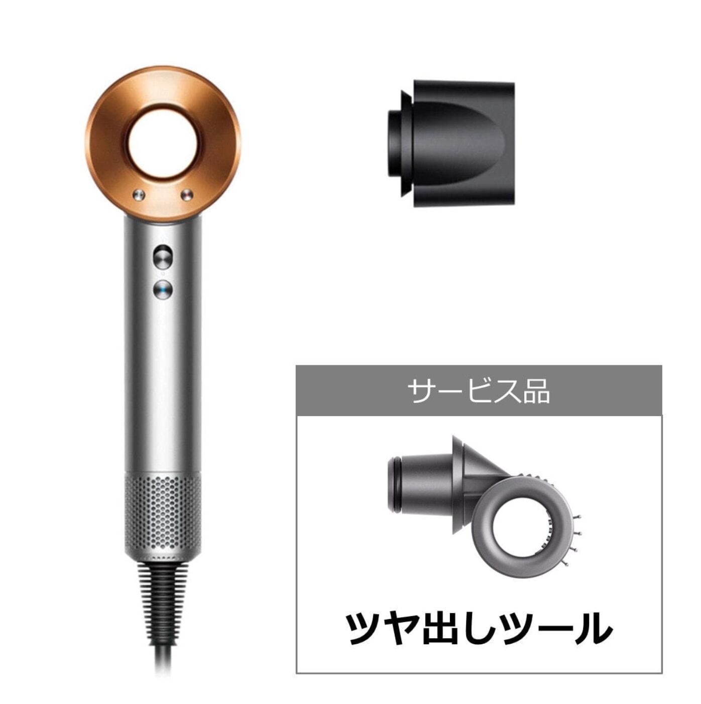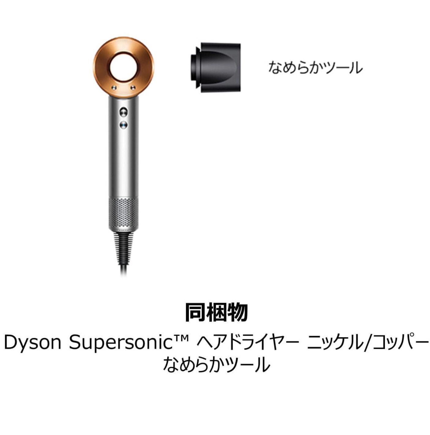 ダイソン スーパーソニックヘアドライヤー ニッケル/コッパー(1200W)HD08 Origin JP BNk/BCoに、スーパーソニック ツヤ出しツール(カラー/アイアン)が無償添付された特別キャンペーン。