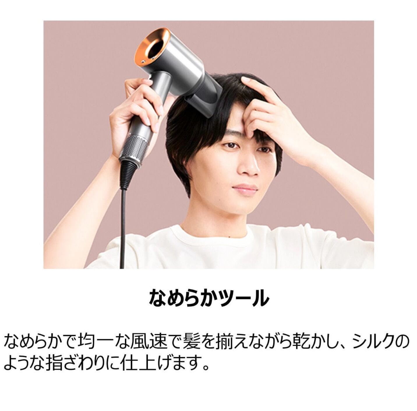 なめらかで均一な風速で髪を揃えながら乾かし、シルクのような指ざわりに仕上げます。