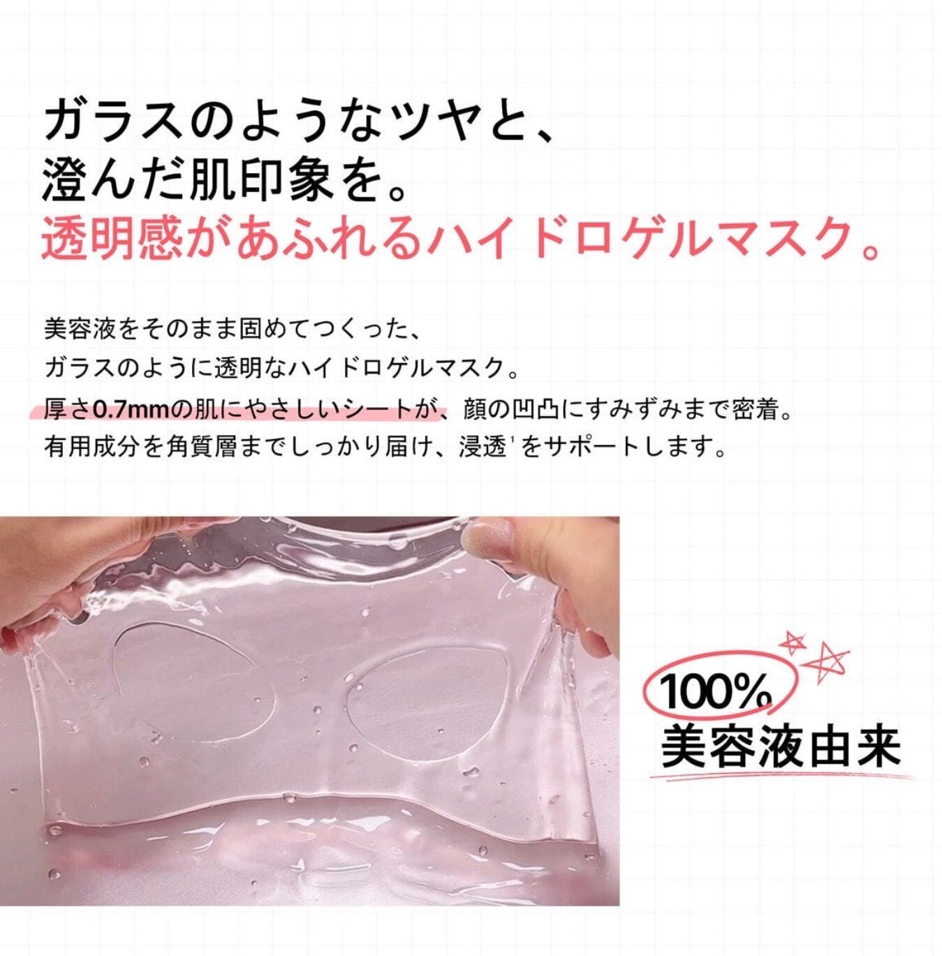 美容液をそのまま固めて作った、ガラスのような透明なハイドロゲルマスク。